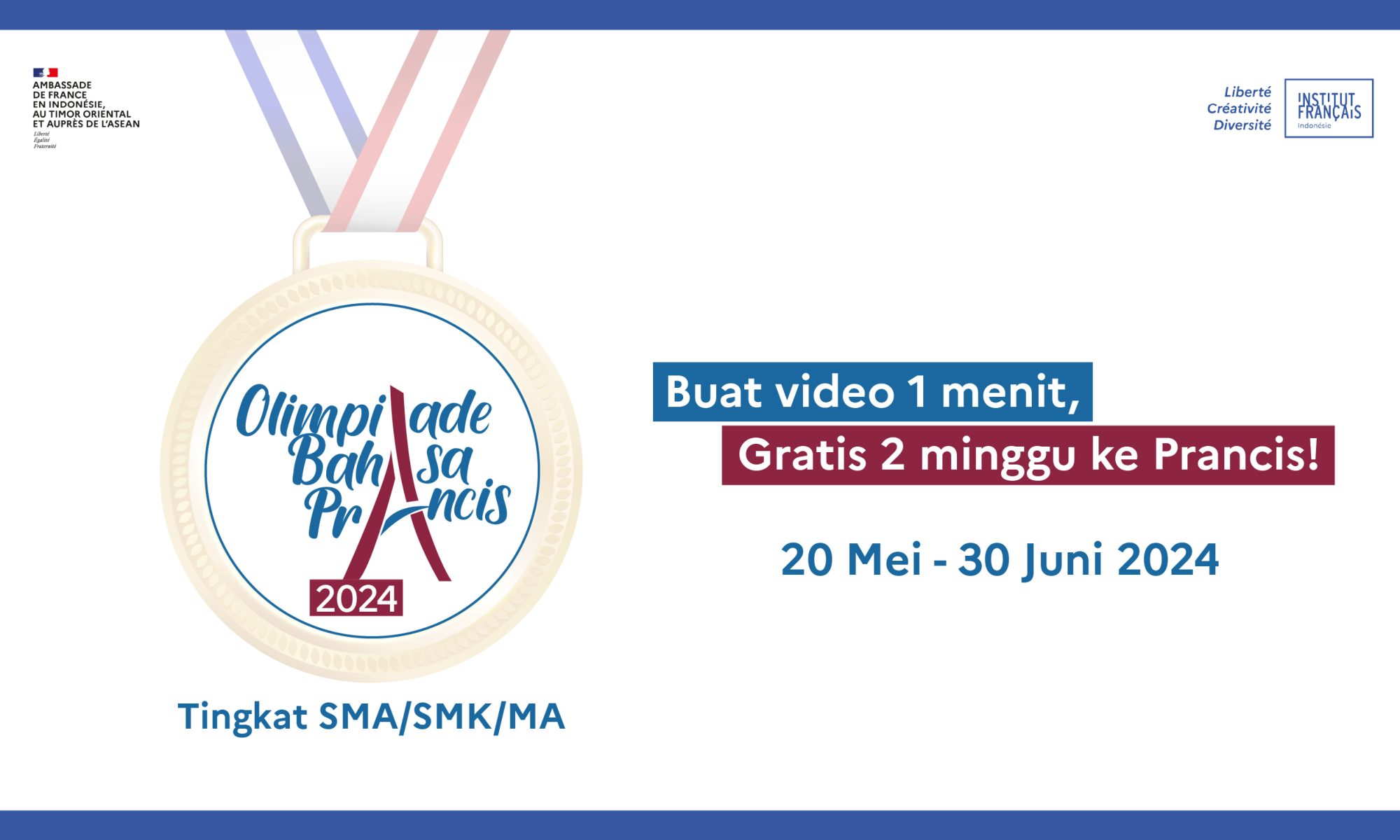 Les résultats de la session de mars 2024 de l’examen international DELF-DALF de l’Institut français d’Indonésie (IFI) et de l’Alliance française (AF) ont été officiellement annoncés. Nous félicitons tous les candidats qui ont passé l’examen avec succès lors de cette session ! Pour récupérer votre attestation de réussite ou pour obtenir d’autre information supplémentaire, veuillez vous rendre au secrétariat de cours du centre d’examen.