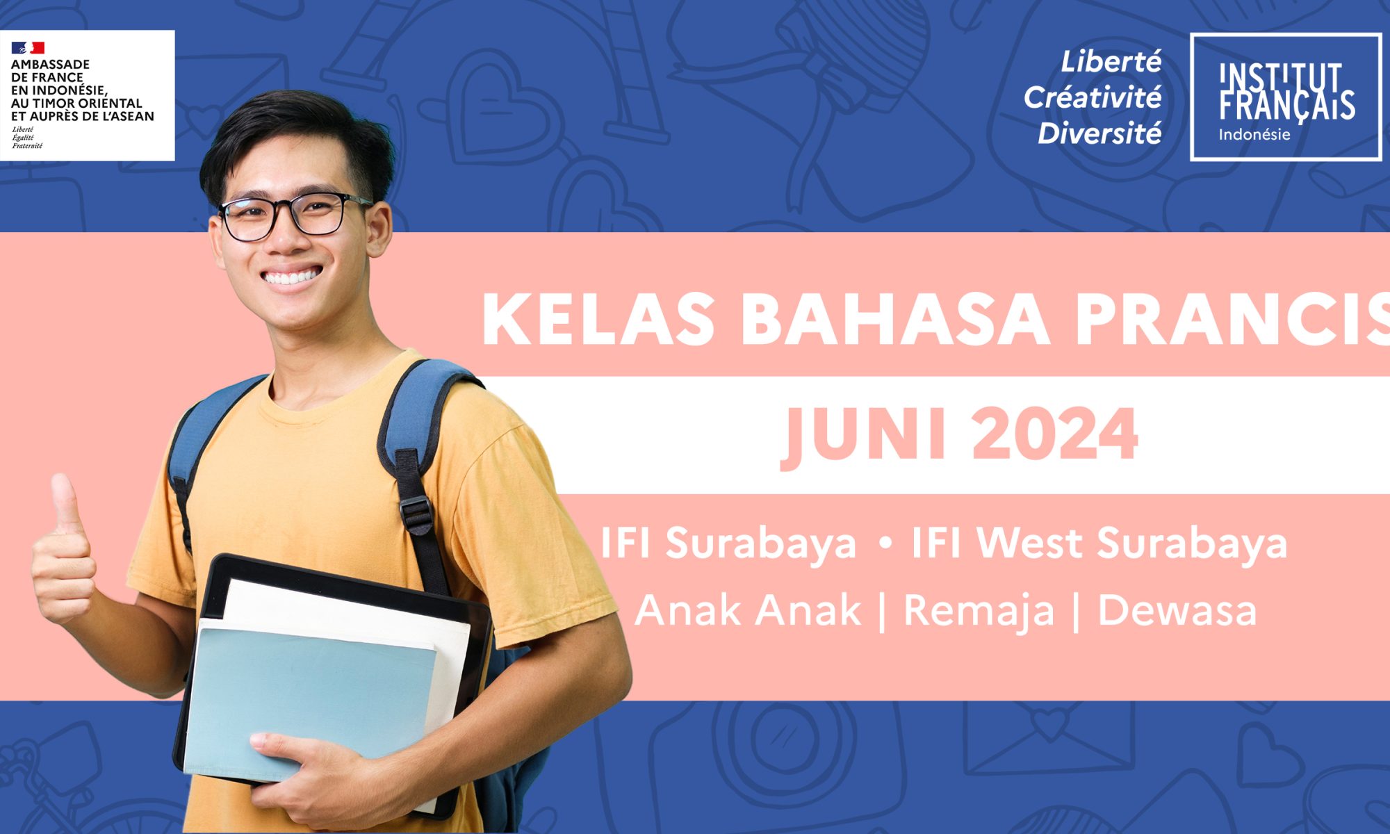 Vous voulez maîtriser le français et ouvrir de nouvelles opportunités ? L’IFI Surabaya ouvre à nouveau ses cours de français pour la session de juin ! Profitez d’une expérience d’apprentissage interactive et amusante avec des enseignants expérimentés. Que vous soyez débutant ou avancé, tout le monde est le bienvenu ! Rejoignez-nous et découvrez la beauté de la langue et de la culture française.