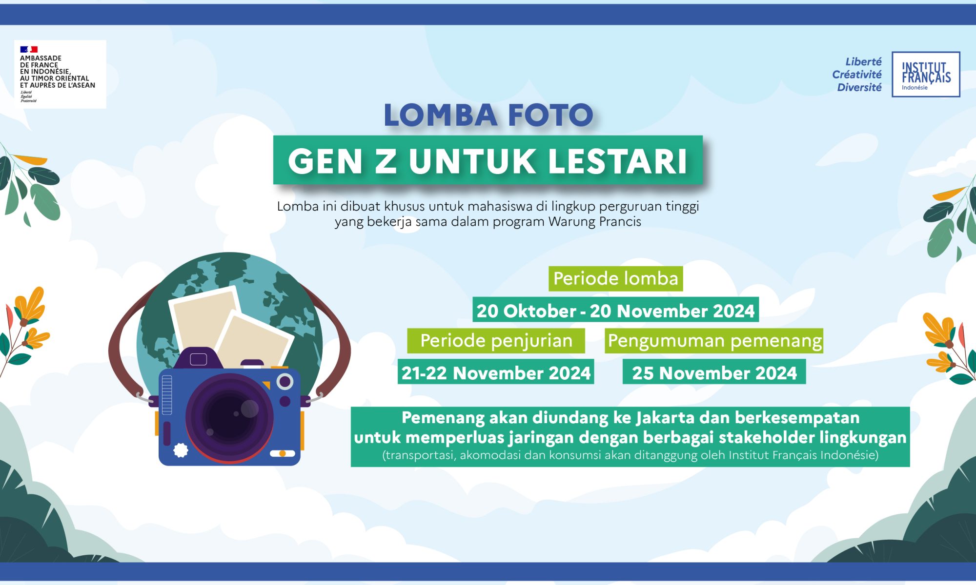 Pour sa 12ème année, l’IFI organise un concours photo intitulé « Gen Z Untuk Lestari ». Ce concours a été créé spécifiquement pour les étudiants des universités qui collaborent avec l’IFI dans le cadre du programme Warung France (voir la liste ci-dessous).